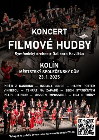 Ve čtvrtek 23.1.2025 v 19:30 hodin se v Městském společenském domě v Kolíně rozezní slavné filmové melodie v podání Symfonického orchestru Dalibora Havlíčka. Toto mladé hudební těleso navštíví Kolín v rámci svého turné.
